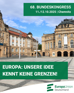 „Unsere Idee kennt keine Grenzen“ – so lautet das Motto des 68. Bundeskongresses am 11./12. Oktober in Chemnitz, bei dem die Europa-Union Sachsen zugleich ihr 10-jähriges Jubiläum feiert. Das Kongressmotto spielt nicht nur auf die Aufhebung der Kontrollen an unseren Binnengrenzen an, sondern auch auf das Überwinden von Denkblockaden, schreibt EUD-Generalsekretär Christian Moos im Leitartikel unseres Mitgliedermagazins. „Europa verfügt über enorme Potenziale. […] Entweder wagt Europa den Sprung zu mehr Integration, oder es riskiert den…
