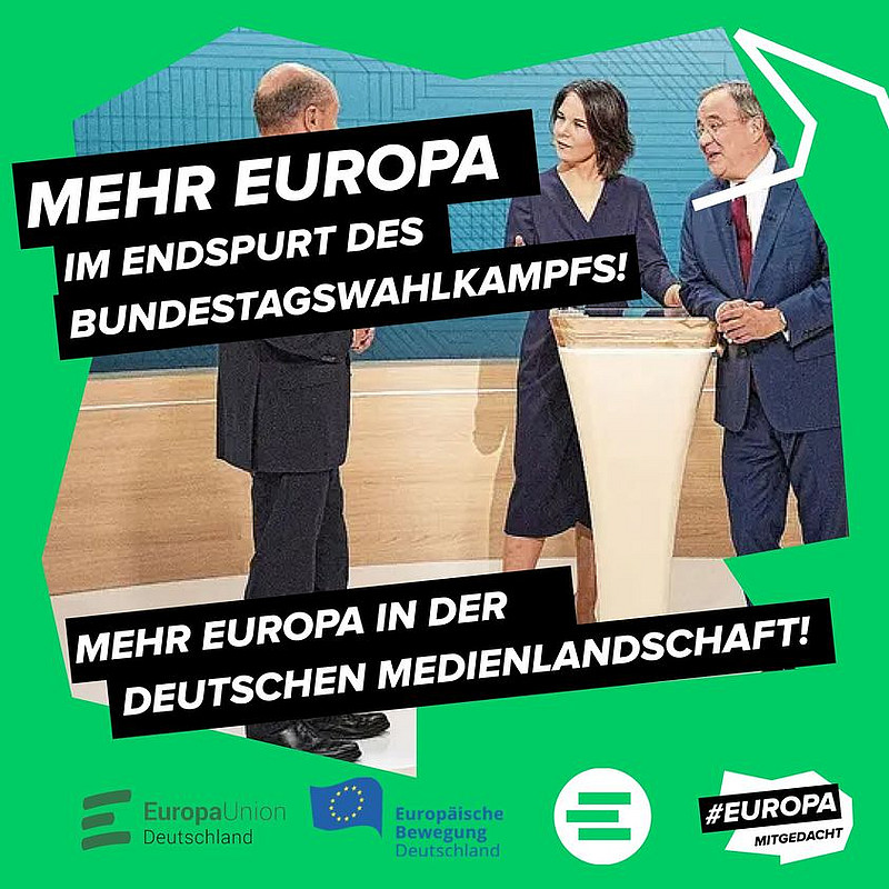 Mehr Europa im Endspurt des Bundestagswahlkampfs 2021, mehr Europa in der deutschen Berichterstattung!