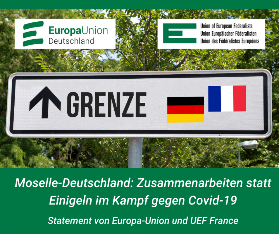 +++ Auch unser Landesverband Saar meldet sich in der Debatte zu Wort: Hier finden Sie Hintergrundinfos zur Petition der Europa-Union Saar, die fordert, den kleinen Grenzverkehr zwischen dem Departement Moselle und dem Saarland nicht nur für Berufspendler*innen und Warentransporte, sondern für alle Menschen zu gewährleisten. +++