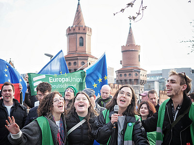 Der gemeinsame Bundesausschuss von Europa-Union und JEF Deutschland am 15. März in Berlin stand unter dem Eindruck der weltpolitischen Umwälzungen. Die Abkehr der neuen US-Regierung von Europa und einer regelbasierten Weltordnung ändert für Deutschland und Europa alles. Die Nachlese zur Bundestagswahl als beherrschendes Thema der Tagung stand im Lichte dieser aktuellen Entwicklungen. An die Tagung schloss sich die Kundgebung "Zusammen für Europa" an, zu der JEF und EUD gemeinsam aufgerufen hatten.